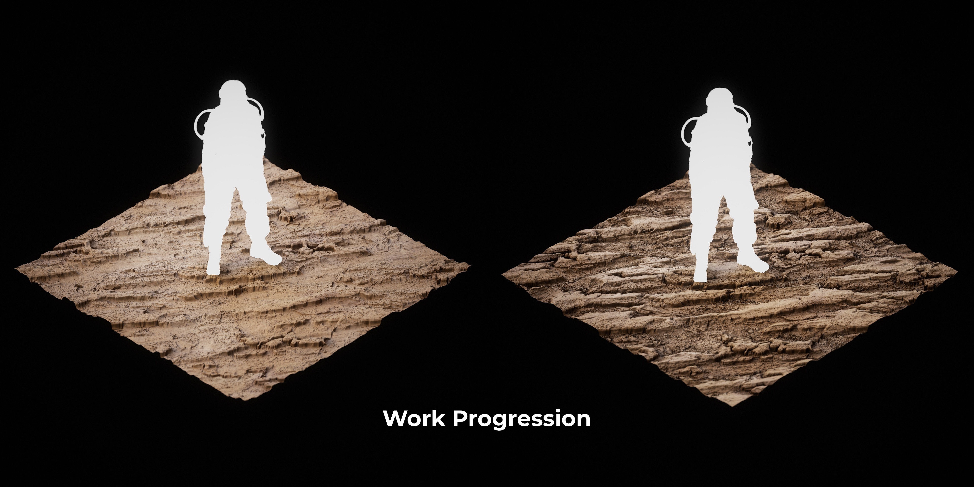 This was a relatively quick study of dry ground! Nothing in mind, just some dry environment references. For this one, I used a mix technique of creating most of the base in Substance Designer and using scanned data to merge the small pebbles and rocks in.